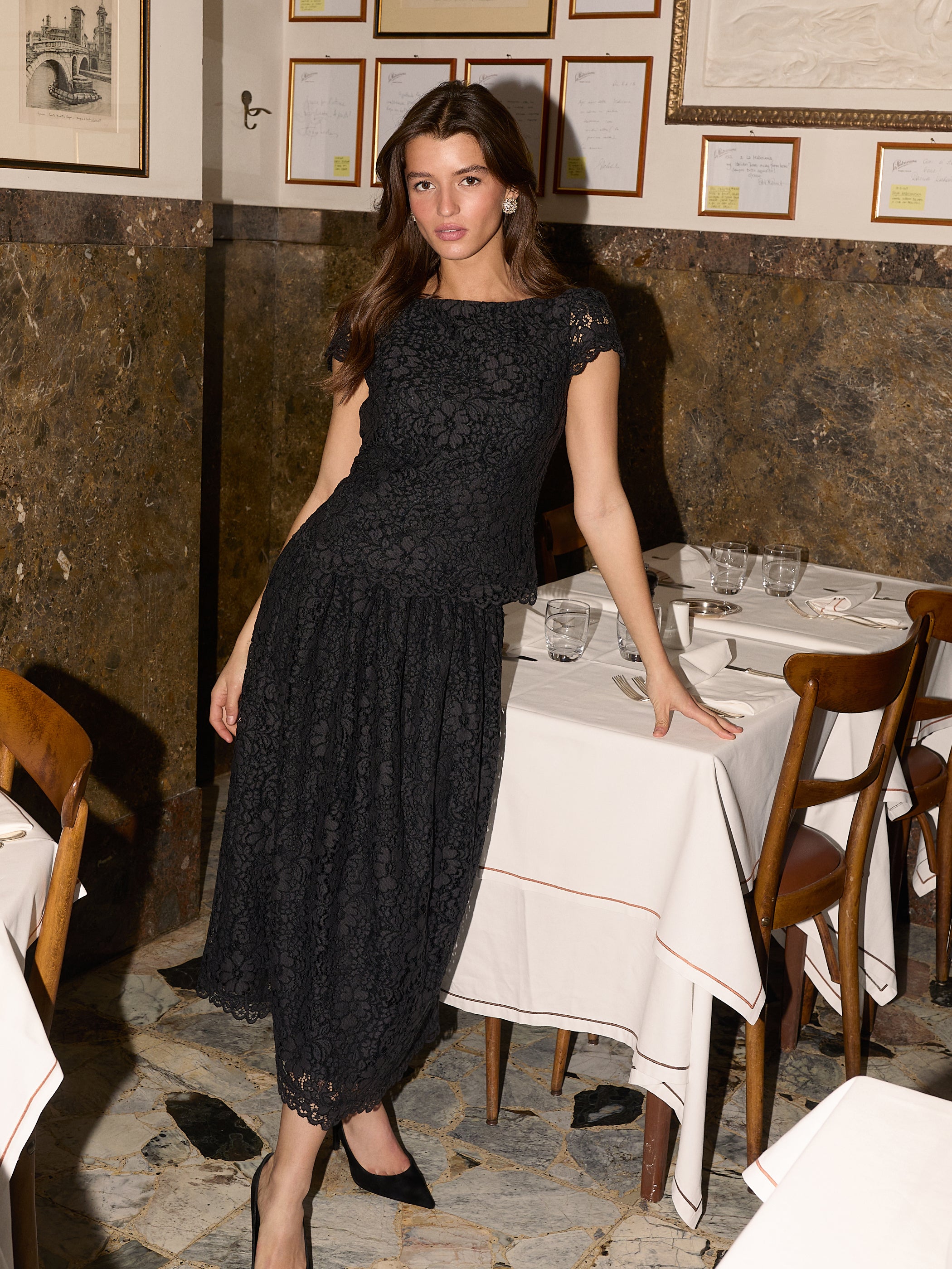 Model is 179 cm / 5’10” and wears size 36.